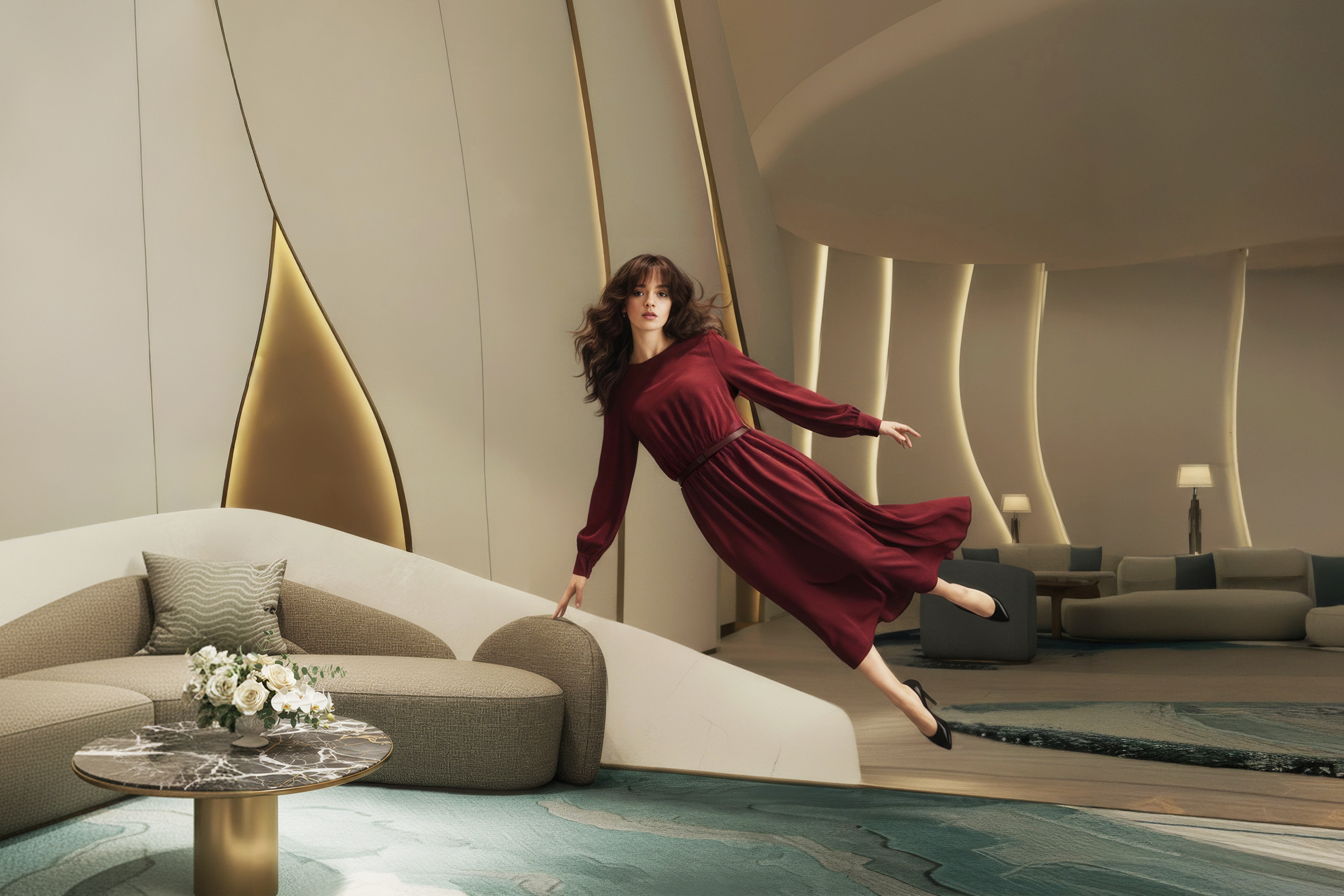 Harmony emerges from contrast: the Caspian’s curves meet architectural precision, forming a space of balance and allure.